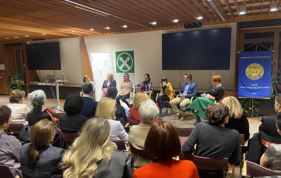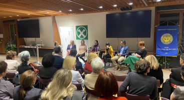 Patrizia Hainz, die Moderatorin des Abends, lud die Referentin und die zwei Referenten zum Abschluss auch zu einer Diskussionsrunde ein. Die spannenden Gespräche wurden beim anschließenden Umtrunk, welcher in Zu-sammenarbeit mit Bruneck Kronplatz Tourismus umgesetzt wurde, vertieft.